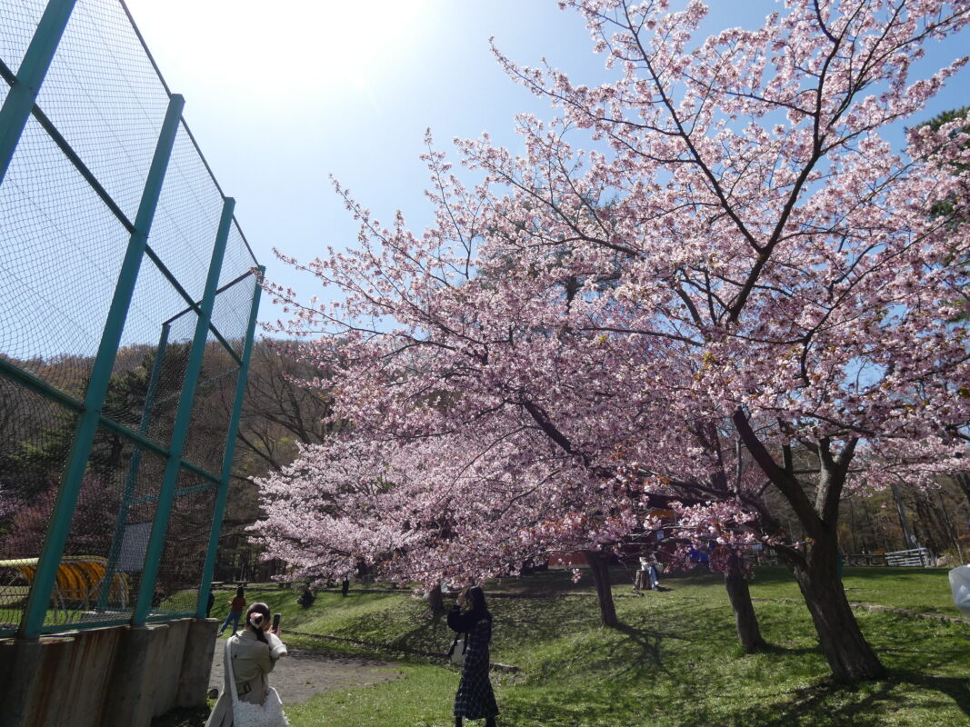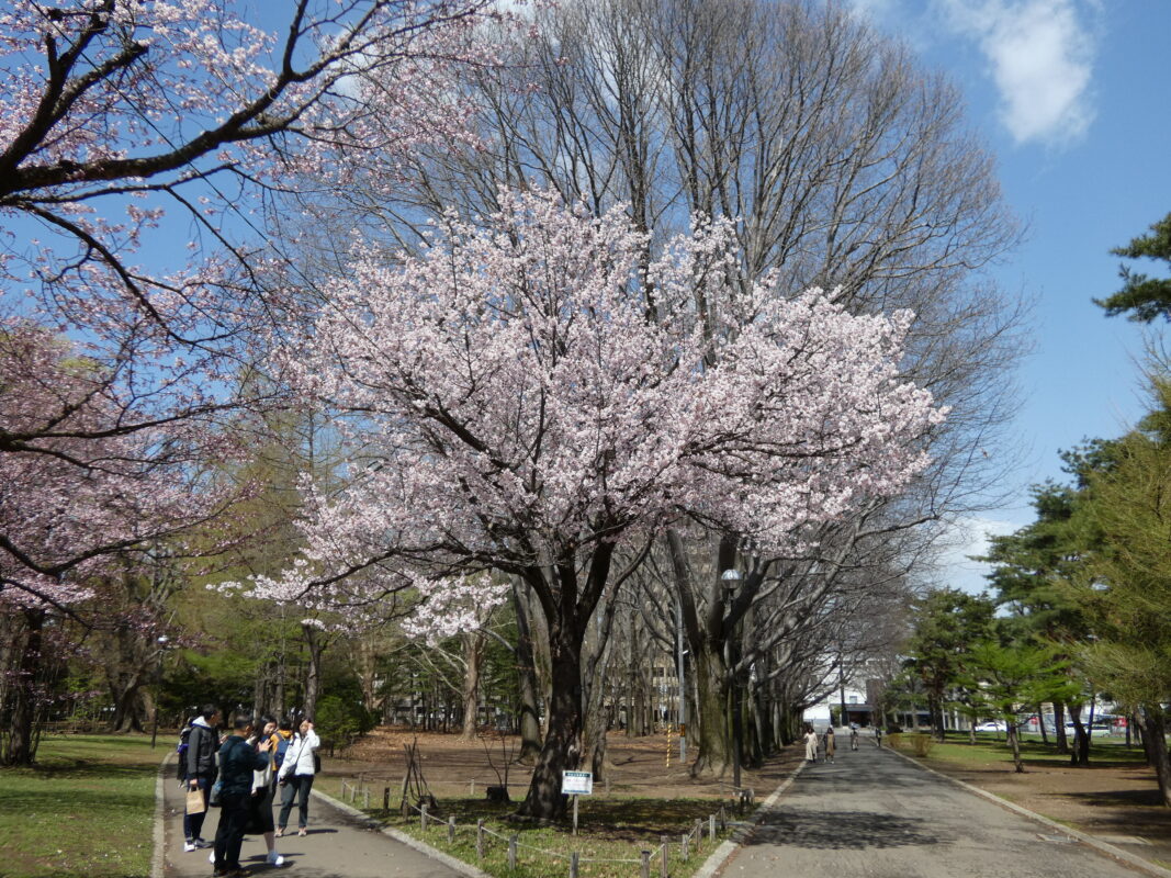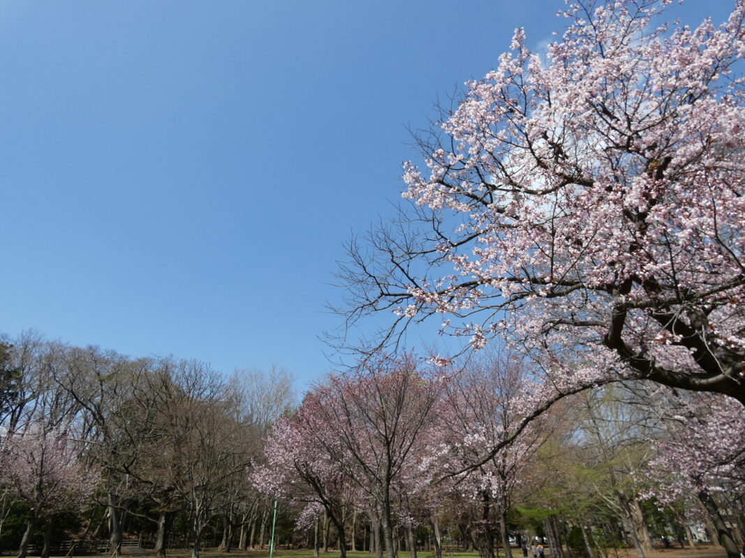 さくら開花情報 五分咲きから見頃 4月21日のさくら開花状況です。 円山公園にある標本木は満開となりました。 今朝は肌寒く、雨が降っていましたが、やんで快晴となり暖かくなりました。 園内のさくらは全体的に開花はしているのですが、全体としては五分咲きになっています。 坂下野球場周辺のエゾヤマサクラは満開で写真撮影に来ている方が多くみられました。 ソメイヨシノはもう少しです。